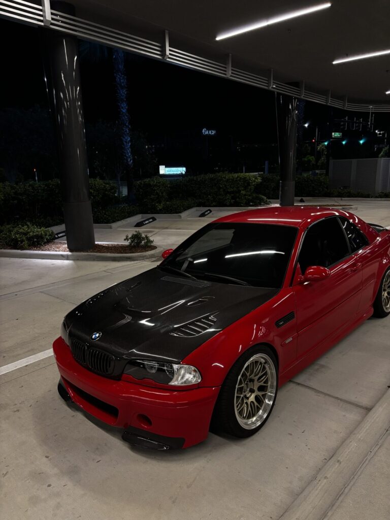 Has a Csl front bumper, and a Vis racing carbon fiber hood, known to be only 4 in the east coast.