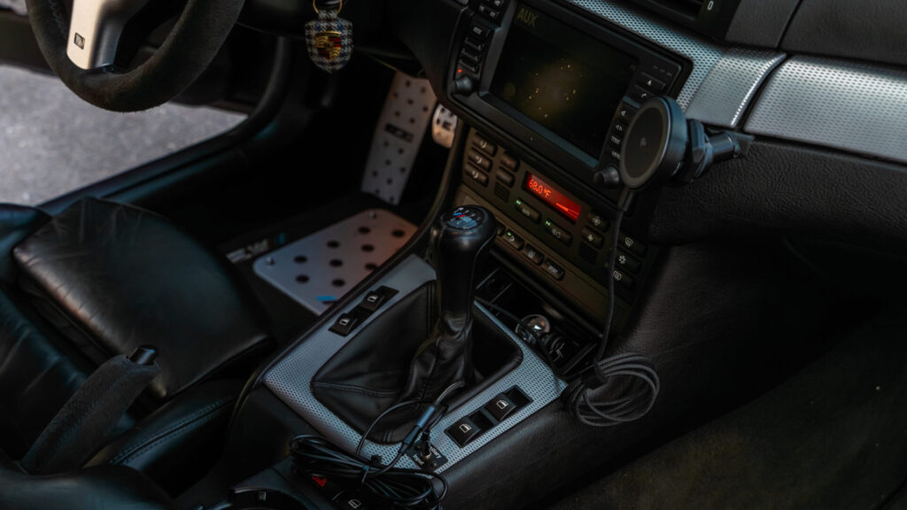 A Garagistic short throw shifter and DSSR and Condor Clutch Pedal Bushings have been added, and the factory stereo with a Bavsound upgraded speaker system was installed. 156k miles are shown on the digital odometer, approximately 1k of which have been added during the seller’s ownership.