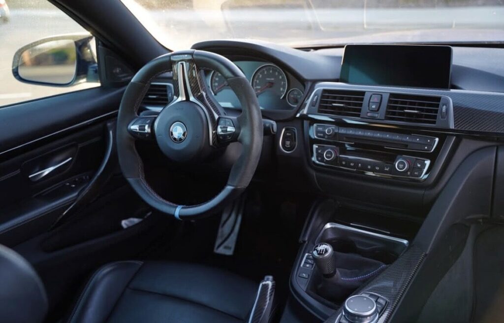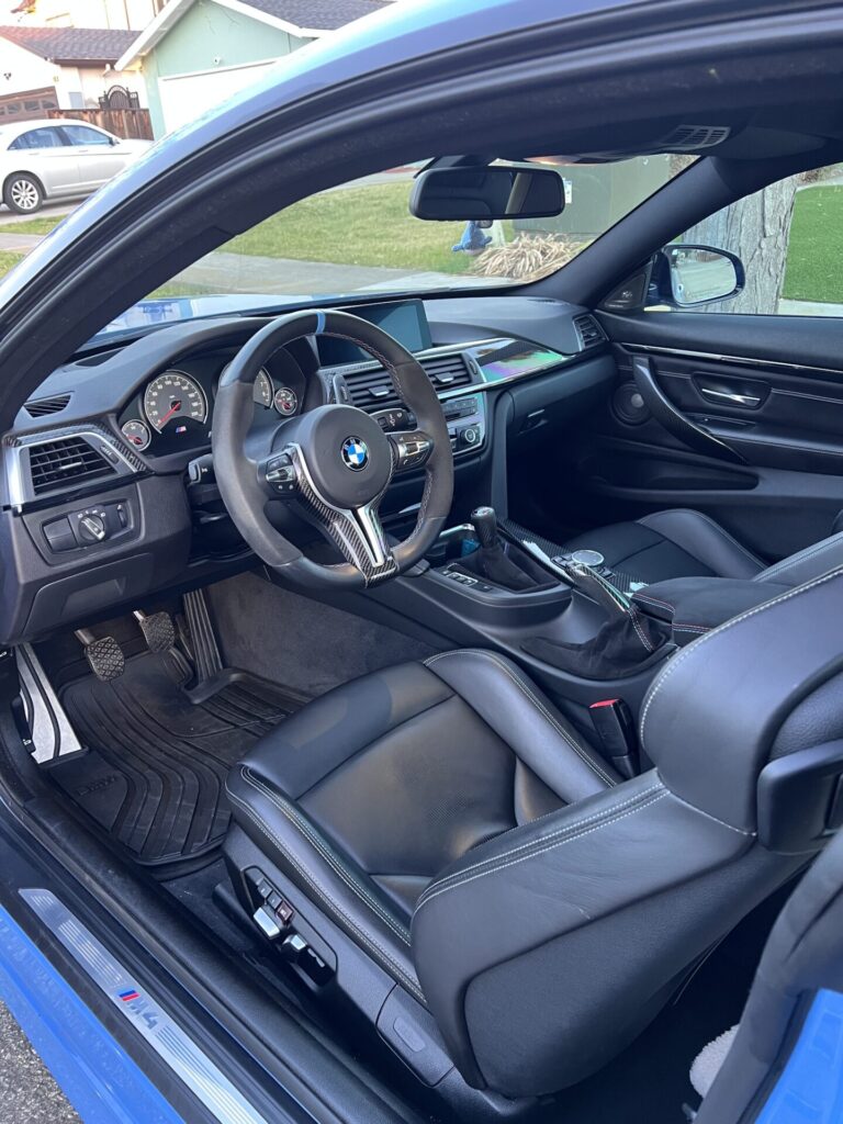 If you’re looking for a Yas Marina blue M4 with low miles this one checks every box. I know because when I was looking for one I wanted it all. The enthusiast spec. Competition, 6 speed manual, carbon roof. The M performance carbon trim on the dash, door handles, center console, behind the seats, even the headrest behind the passenger seats! It’s the details in this one that matter. Suede tricolor stitch shift boot, arm rest, and even E brake boot. Not a single detail overlooked.