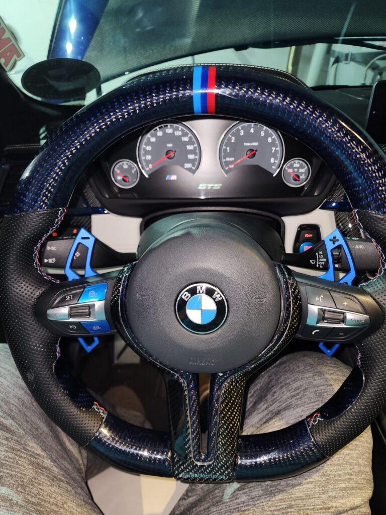 Single Turbo Individual Tanzanite Blue M4. Over 60k worth of modifications done. Full PPF on the car. Blue Kevlar bumper, fenders, seat backs and rear seat delete done by Dinmann. HRE 101 19’s on P4s new tires. Airlift 3p Air Suspension. Custom installed passport 9500ci many mods to list Custom midpipe with electric dump and titanium cat back exhaust. dm on Instagram ill answer any questions and open to shipping car. Also open to removing the kevlar pieces and putting it back to stock on the body work and remove the cage if needed and would adjust the price.