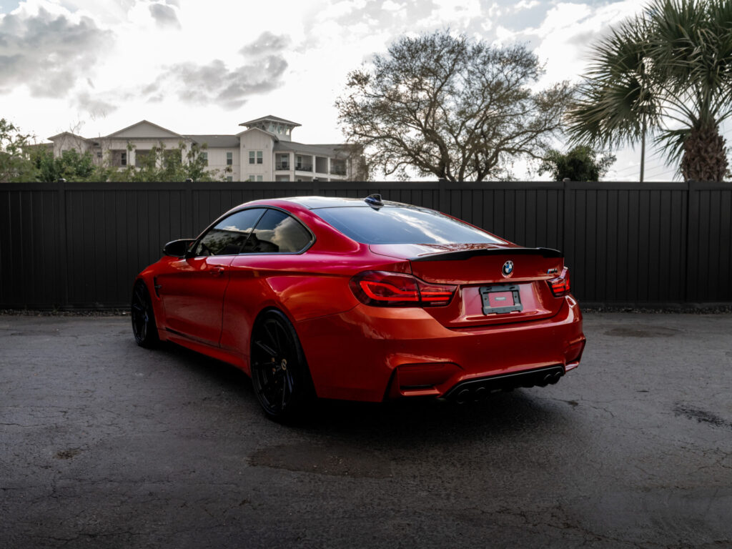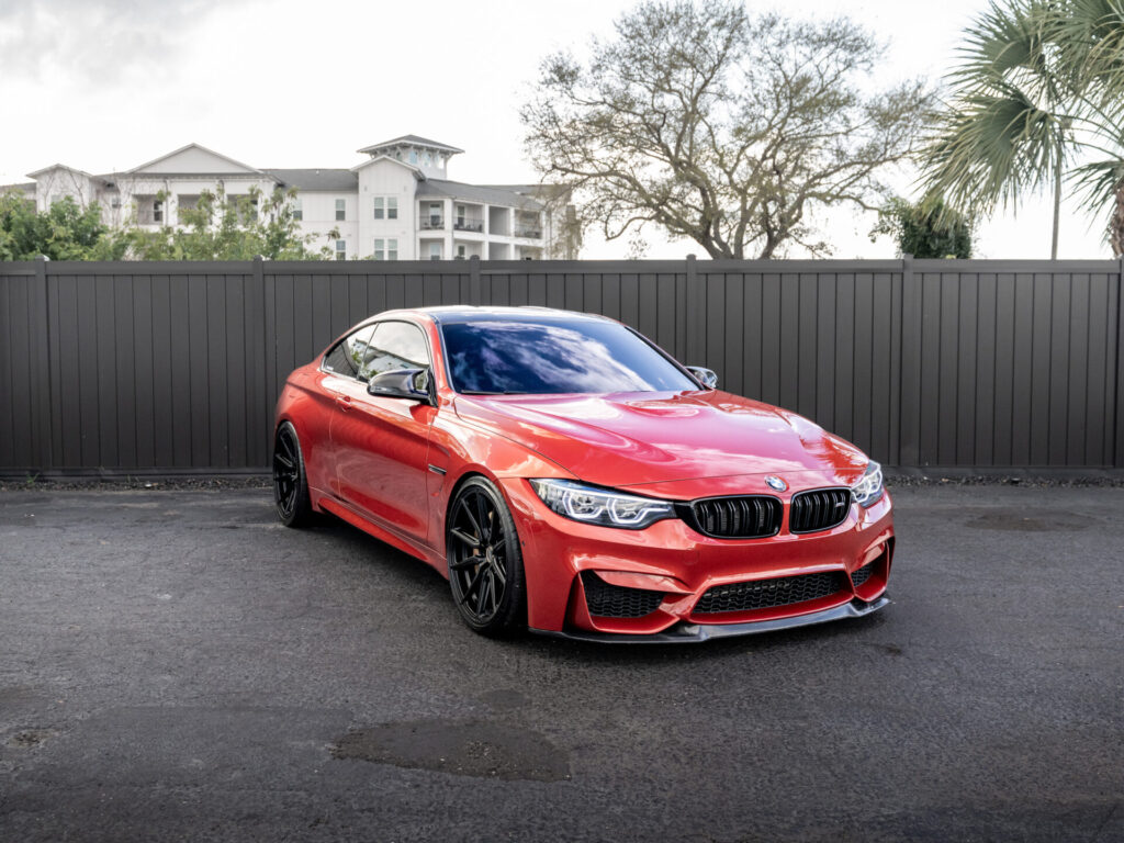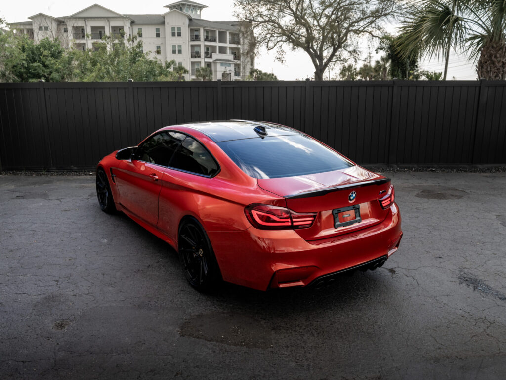 Presenting our 2020 BMW M4 Competition, finished in Sakhir Orange Metallic over Carbon Structure Cloth. Powered by a 3.0L Twin-Turbocharged Inline-6 paired with a 7-speed M-DCT transmission.