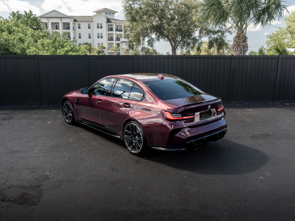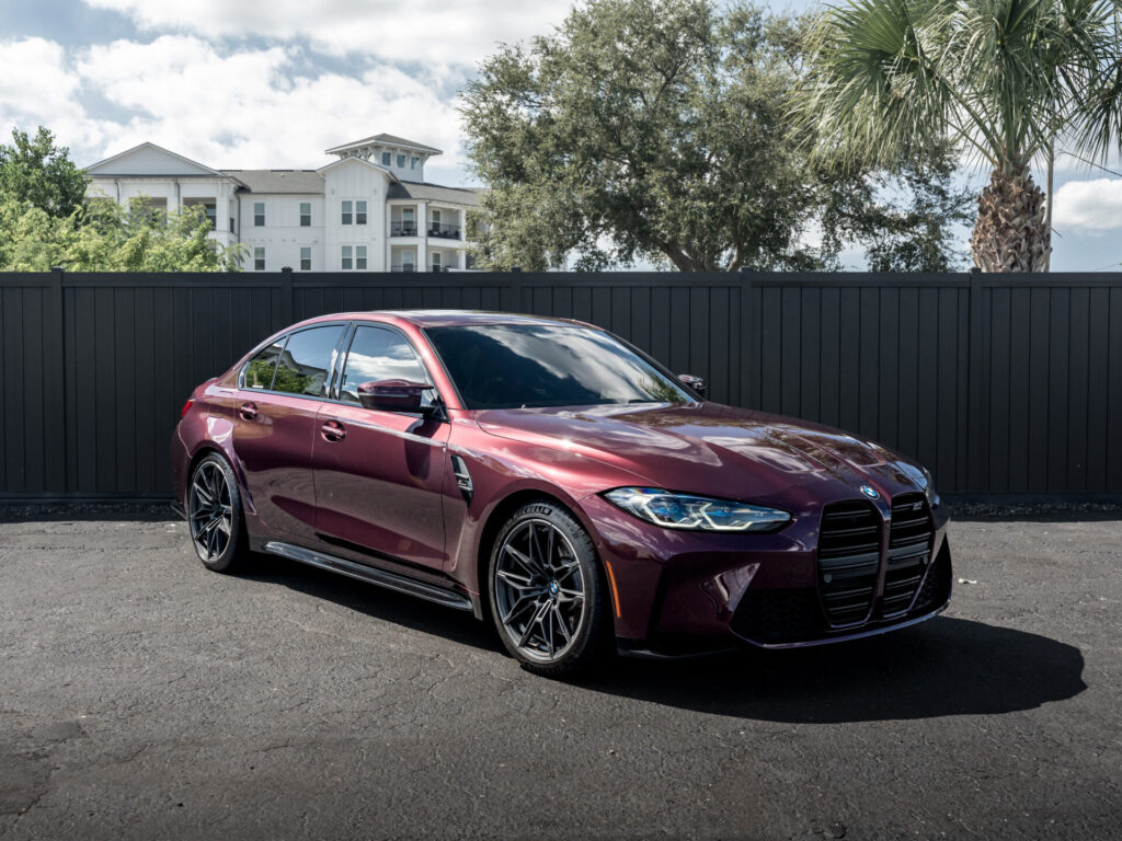 Presenting our 2022 BMW M3 Competition xDrive, finished in BMW Individual Wildberry Metallic over Full Tartufo Merino leather. Powered by a 3.0L Twin-Turbocharged Inline-6 paired with an 8-speed M STEPTRONIC automatic transmission w/ Drivelogic and BMW?s xDrive all-wheel-drive system.