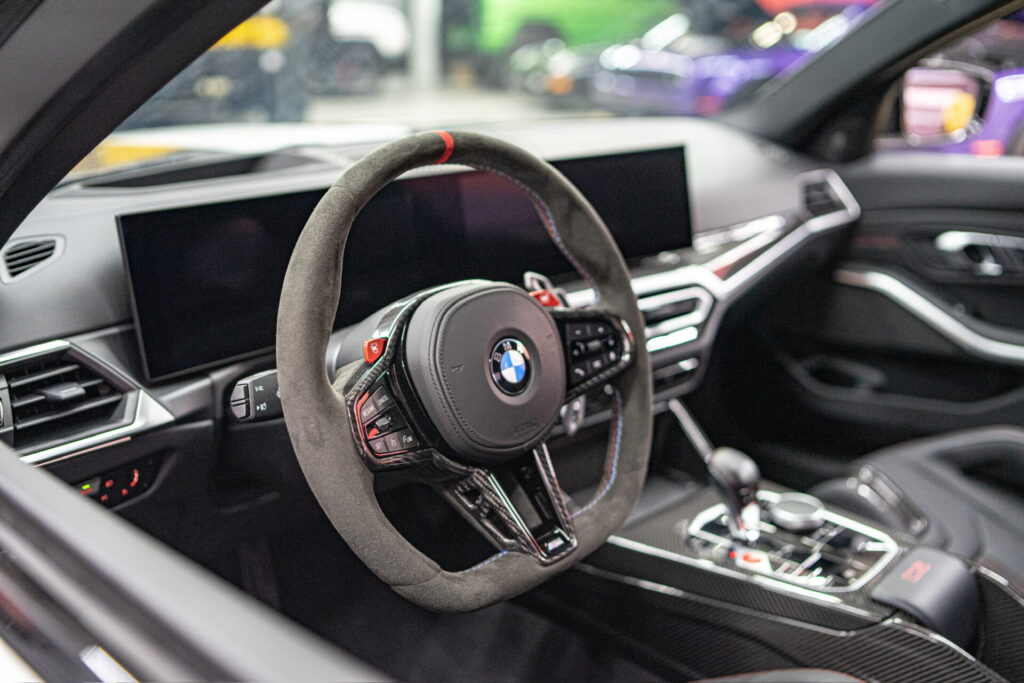 Finished with signature CS-specific lightweight components, aggressive carbon fiber exterior accents, and a performance-tuned chassis, the M3 CS is lighter, sharper, and more exclusive than the standard M3 Competition. Inside, it features M Carbon bucket seats, Alcantara trim, and the latest iDrive infotainment system.